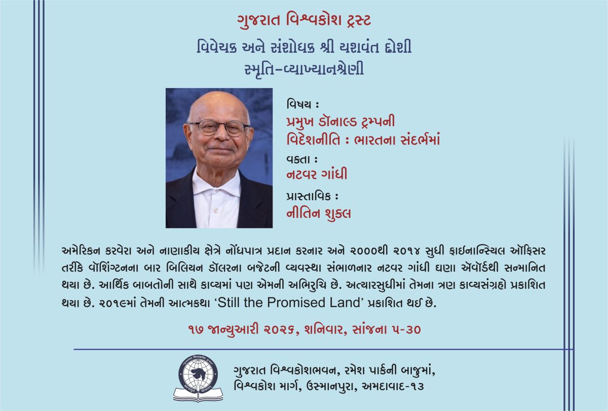 વિષય : પ્રમુખ ડૉનાલ્ડ ટ્રમ્પની | વક્તા : નટવર ગાંધી