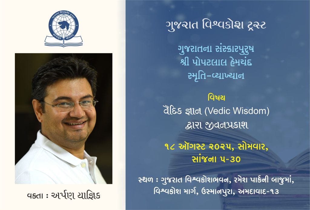 વિષય : વૈદિક જ્ઞાન (Vedic Wisdom) દ્વારા જીવનપ્રકાશ | વક્તા : અર્પણ યાજ્ઞિક | 18 ઑગસ્ટ 2025 | સોમવાર | સાંજના 5-30